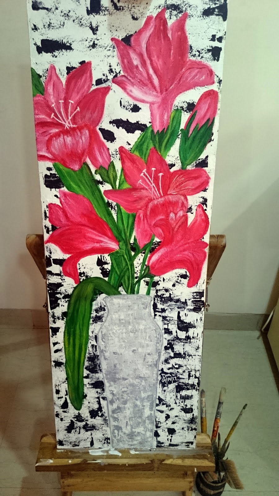 Artist sunken in the darkness giving beauty in Acrylic to blossoms from the darkness, depression and sadness and the world is brighter with the creation.